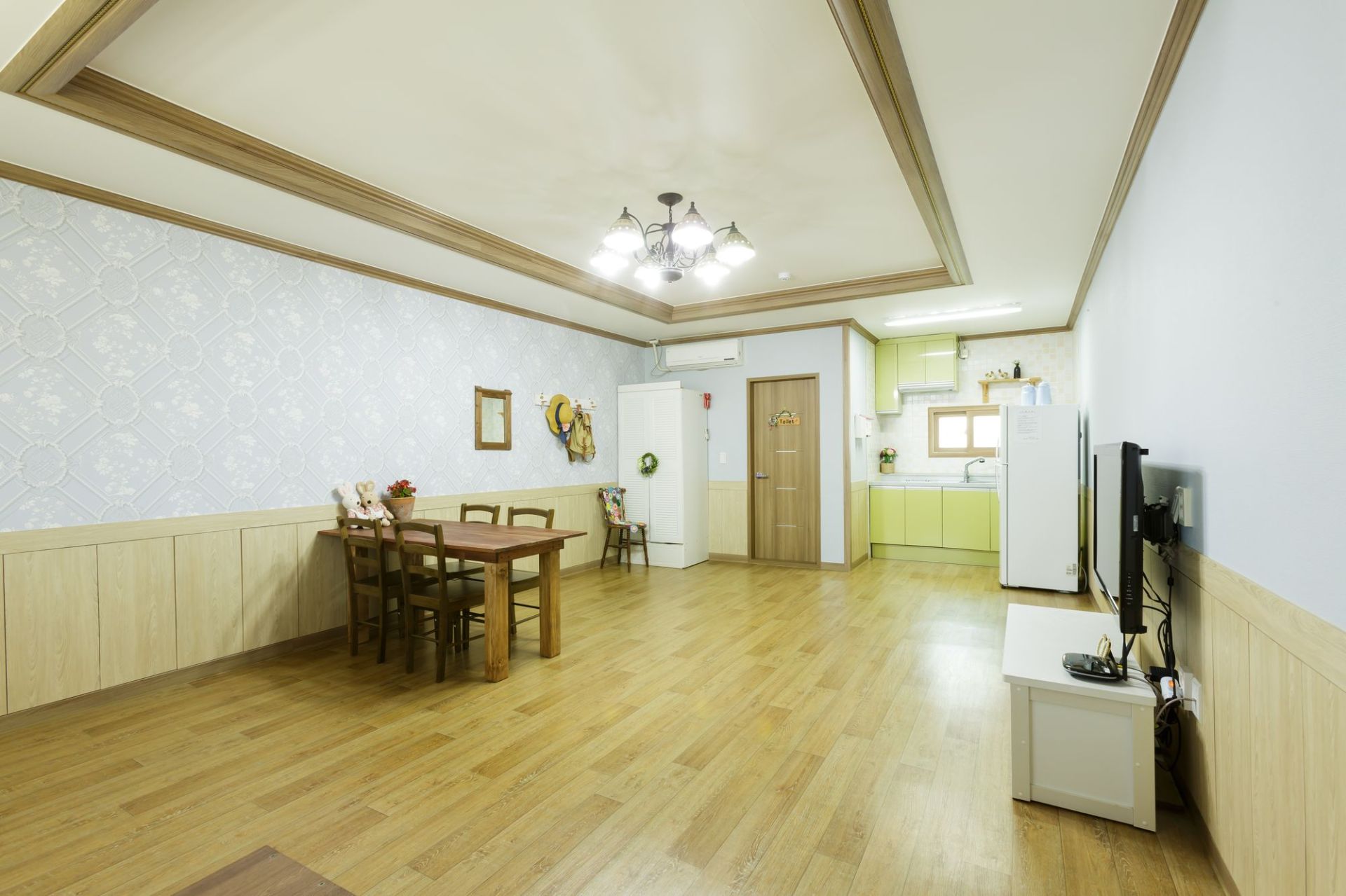 TV, 냉장고, 전기밥솥. 핫플레이트, 주방도구, 욕실용품, 에어컨, 식탁, 헤어드라이기, 포트